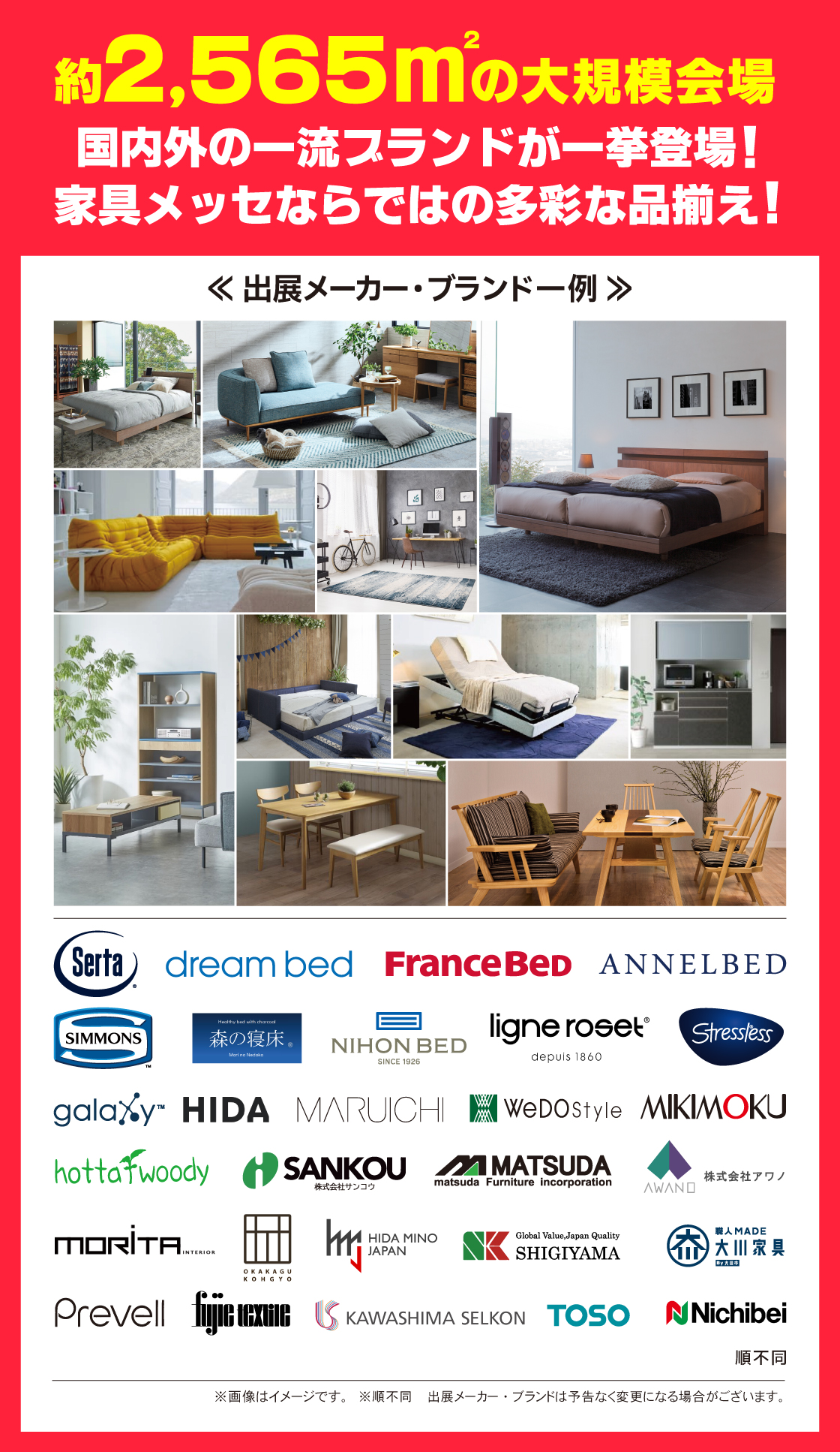 国内外の有名ブランド・メーカーが、3日間限りの特別価格で一堂に会する家具の大バザール