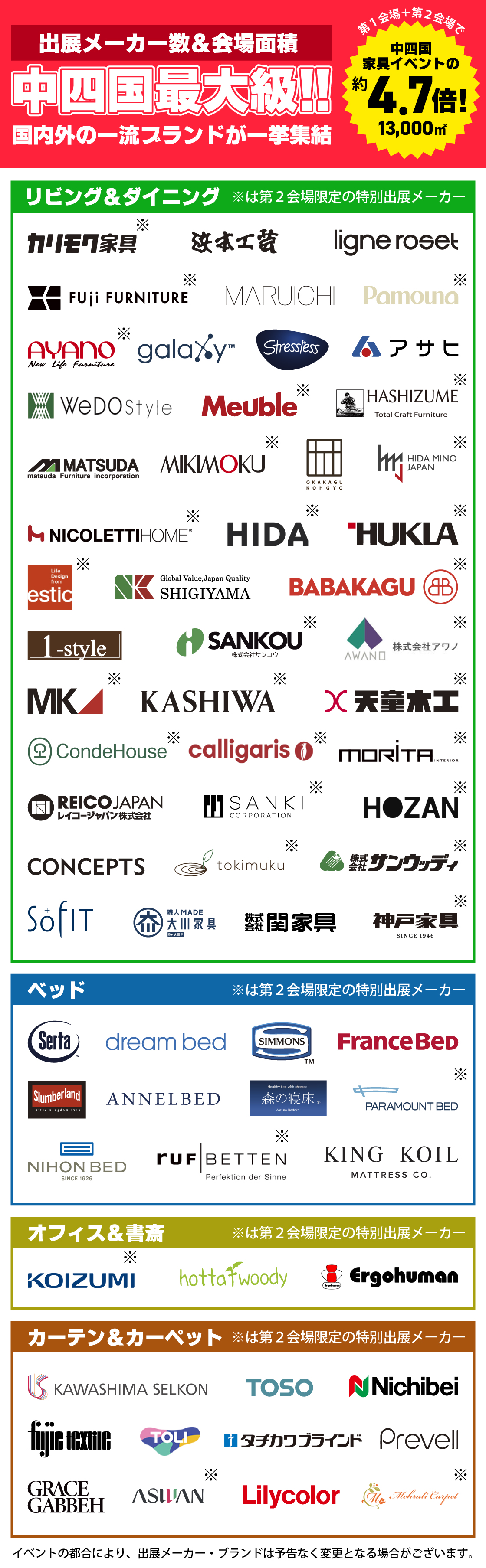 国内外の有名ブランド・メーカーが、3日間限りの特別価格で一堂に会する家具の大バザール