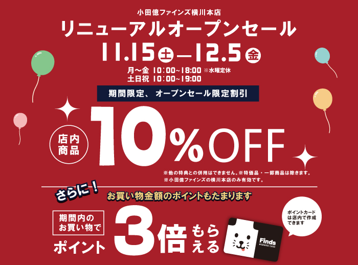 小田億ファインズ横川本店 リニューアルオープンセールは12/5(金)まで
