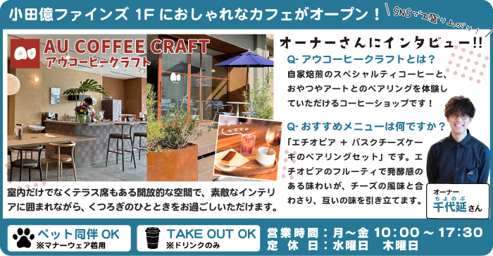 AU COFFEE CRAFT(アウ コーヒークラフト)が小田億ファインズ1階でオープン!