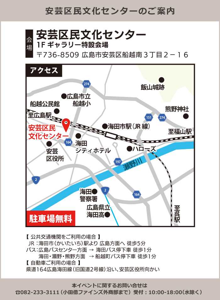 開催場所:安芸区民文化センター 1Fギャラリー特設会場(〒736-8509 広島市安芸区船越南3丁目2−16)