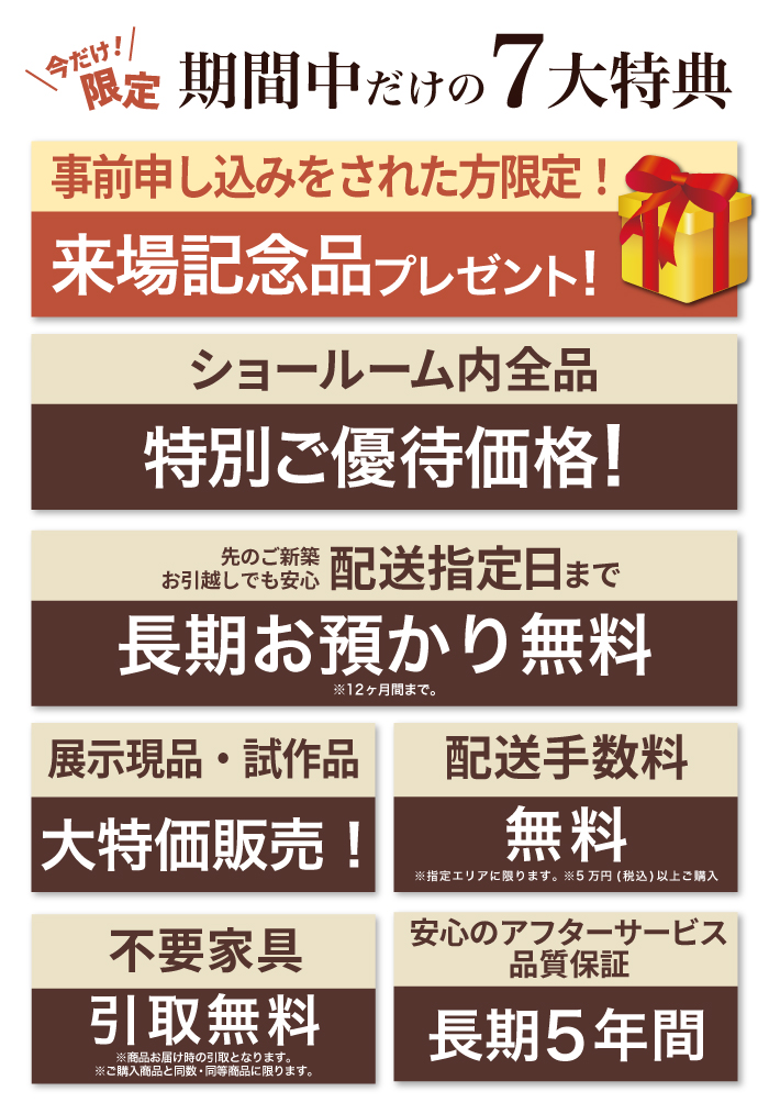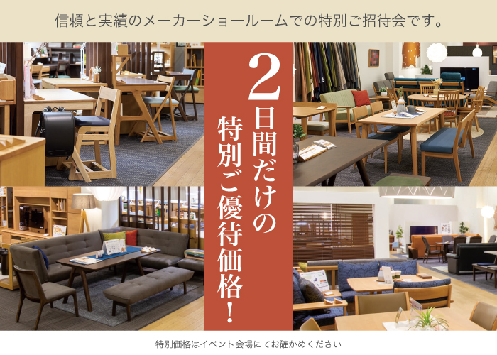 特別ご優待価格での販売会なので、品質の良い安心の国産家具をお得に手に入れる大チャンスです!