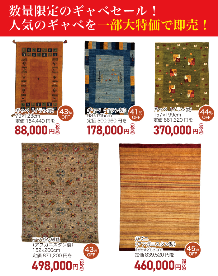 200点以上のギャベ(ギャッベ)が大集結!